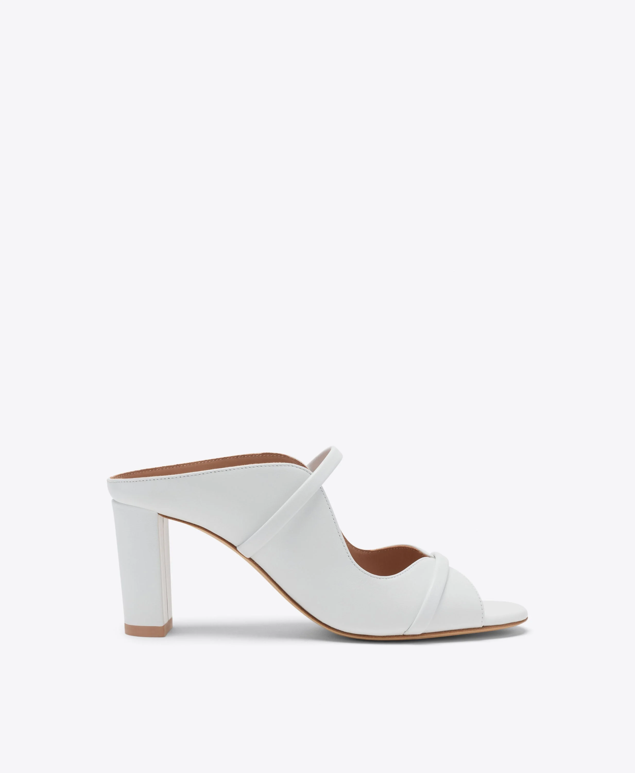 Sculptural simplicity for every celebration. Norah's double straps and open toe sit atop a curved 70mm block heel, offering balance, comfort and beauty in equal measure. Designed for brides who believe elegance should always feel effortless. - Colour: White - Material: Nappa - Sole and Lining: 100% Leather - Style: Sandals - Handmade in Italy - Fitting: True to size SIZE & FIT - Fits true to size - Italian sizing - Model wears size IT37, US7, UK4 - Heel height 70mm/2.7in