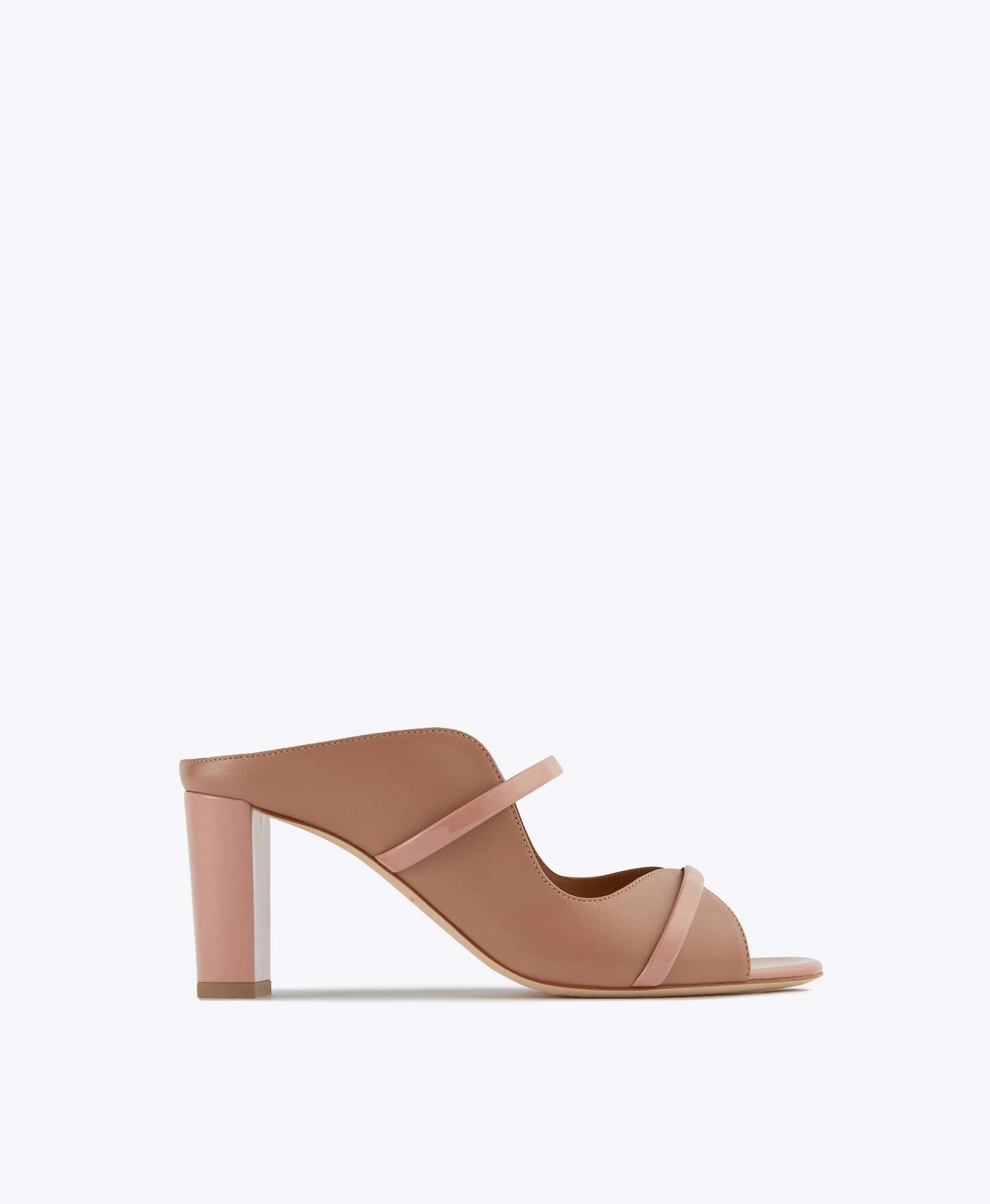 The Norah block heel is one of our most coveted mules. Tracing the sinuous outline of the foot all the way to its peep-toe point, it is uncompromisingly feminine and symmetrically precise. For our Runway 2022 collection, it has been handcrafted in nude Nappa Leather and finished with our signature straps in high-shine Patent. - Colour: Nude - Material: Nappa/Patent - Sole and Lining: 100% Leather - Style: Block Heel Mule - Handmade in Italy SIZE & FIT - True to size - Italian sizing - Model wears size IT37, US7, UK4 - Heel height 70mm/2.7in