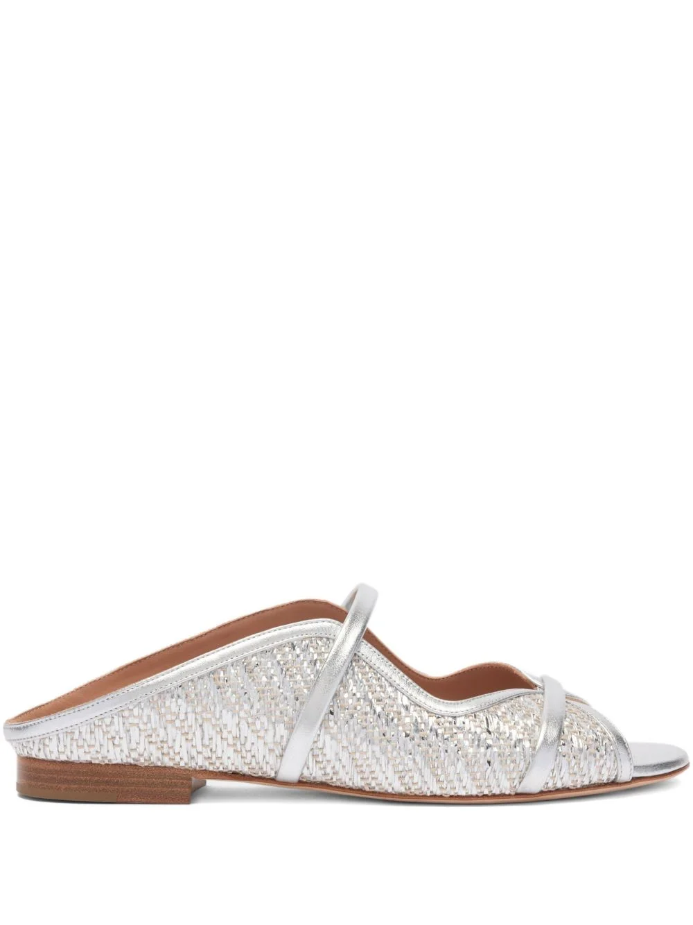 Norah sandals Highlights - Silver-tone - Stacked heel - Strap detailing - Open back Made in Italy Composition Outer: Raffia 90%, Metallic Leather 10% Sole: Calf Leather 100% Lining: Calf Leather 100%