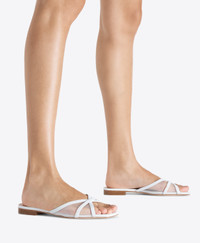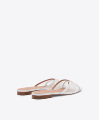 This new-season take on Perla captures minimalist elegance in motion. Handcrafted in sheer white mesh with smooth leather trims, Perla's squared-toe is shaped with a single strap and finished with a sleek monoblock heel. A modern essential, designed to move with you. - Colour: White - Material: Mesh/Nappa - Sole and Lining: 100% Leather - Style: Flat Sandals - Handmade in Italy - Fitting: True to size - Malone Souliers Exclusive SIZE & FIT - True to size - Italian sizing - Model wears size IT37, US7, UK4 - Heel height 10mm/0.4in