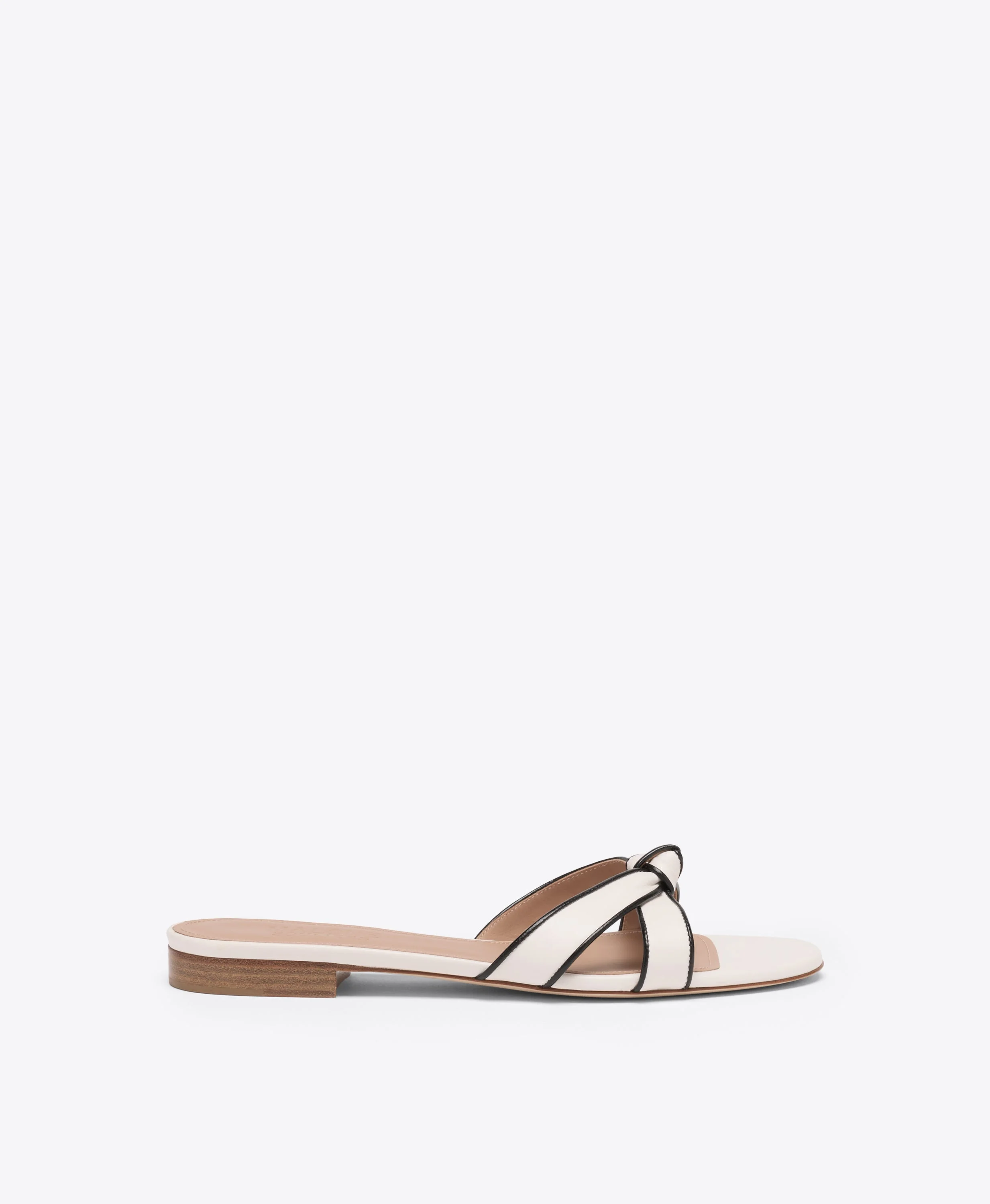 Raquel White & Black Knotted Leather Flat Sandals