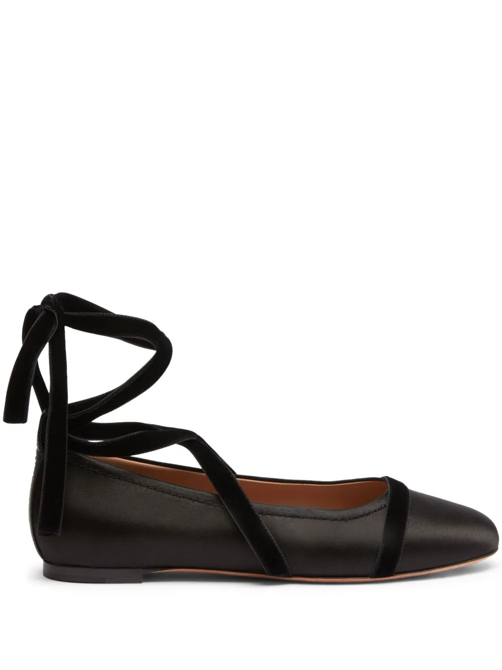 Spencer ballerina shoes Highlights - Black - Satin weave - Velvet trim - Round toe - Front lace-up fastening - Stacked heel - Leather sole Made in Italy Composition Outer: Satin 90%, Velvet 10% Lining: Leather 100% Sole: Leather 100%