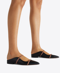 An icon of feminine sophistication, we made our name with the Maureen. One of our best-loved silhouettes also takes the form of a pointed flat shoe in black nappa leather. While retaining the distinctive wave-like profile and signature double straps, this version of the Maureen rests on a small stacked heel. Gentle emphasis on the foot's natural arch remains a key design feature. - Colour: Black/Nude - Material: Nappa/Nappa - Sole and Lining: 100% Leather - Style: Pointed Flat - Handmade in Italy - Fitting: Fits small to size, take half a size larger SIZE & FIT - Fits small to size, take half a size larger - Italian sizing - Model wears size IT37, US7, UK4 - Heel height 10mm/0.4in