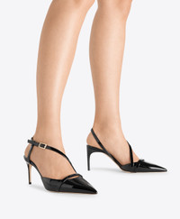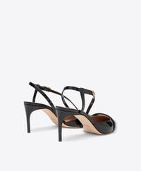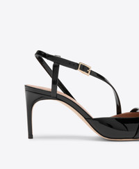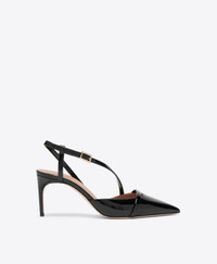 The Valeria slingbacks speak to lovers of modern minimalism. Calling upon '90s silhouettes, the sleek style features asymmetric crossover straps and an adjustable slingback fastening for a secure fit. Handcrafted in Italy from high-shine patent leather, they're set on a sharply sculpted 70mm stiletto heel-bringing a polished finish to day-to-night dressing. - Colour: Black - Material: Patent Leather - Sole and Lining: 100% Leather - Style: Slingbacks - Handmade in Italy - Fitting: True to size SIZE & FIT - Fits true to size - Italian sizing - Model wears size IT37, US7, UK4 - Heel height 70mm/2.7in