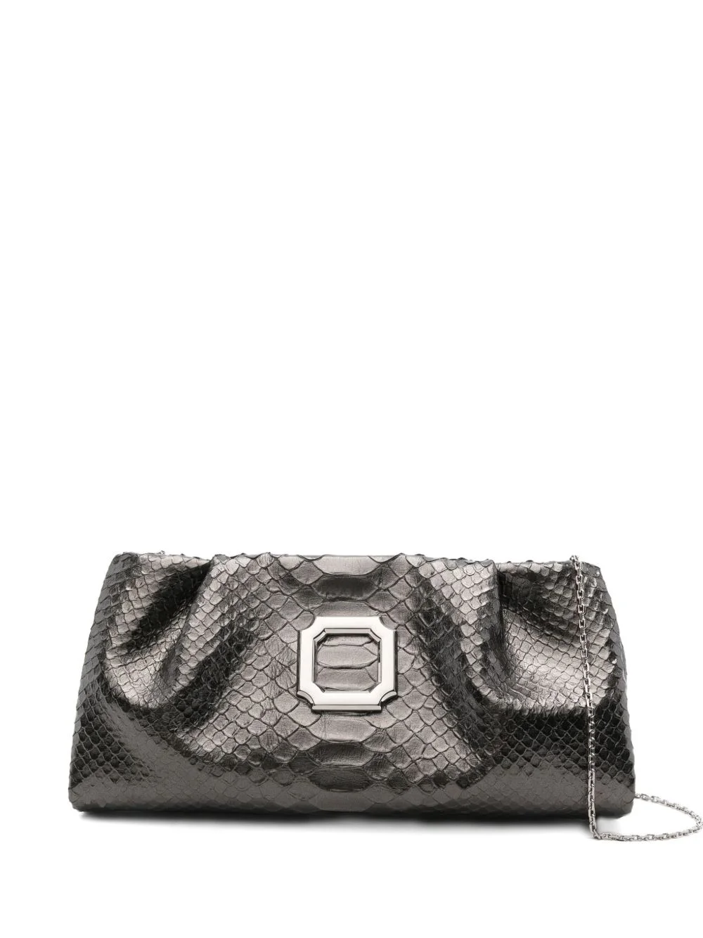 Vittoria clutch bag Highlights - Grey - Snakeskin effect - Pleated design - Magnetic fastening - Chain strap - Rectangular shape Made in Italy Composition Outer: Calf Leather 100% SIZE & FIT Model measurements Height 5 ft 9 in(1.75 m) Bust/Chest 32.67 in(83 cm) Hips 36.22 in(92 cm) Waist 24.8 in(63 cm) Measurement DEPTH 2.36 in(6 cm) HEIGHT 5.11 in(13 cm) STRAP 39.37 in(100 cm) WIDTH 10.62 in(27 cm)