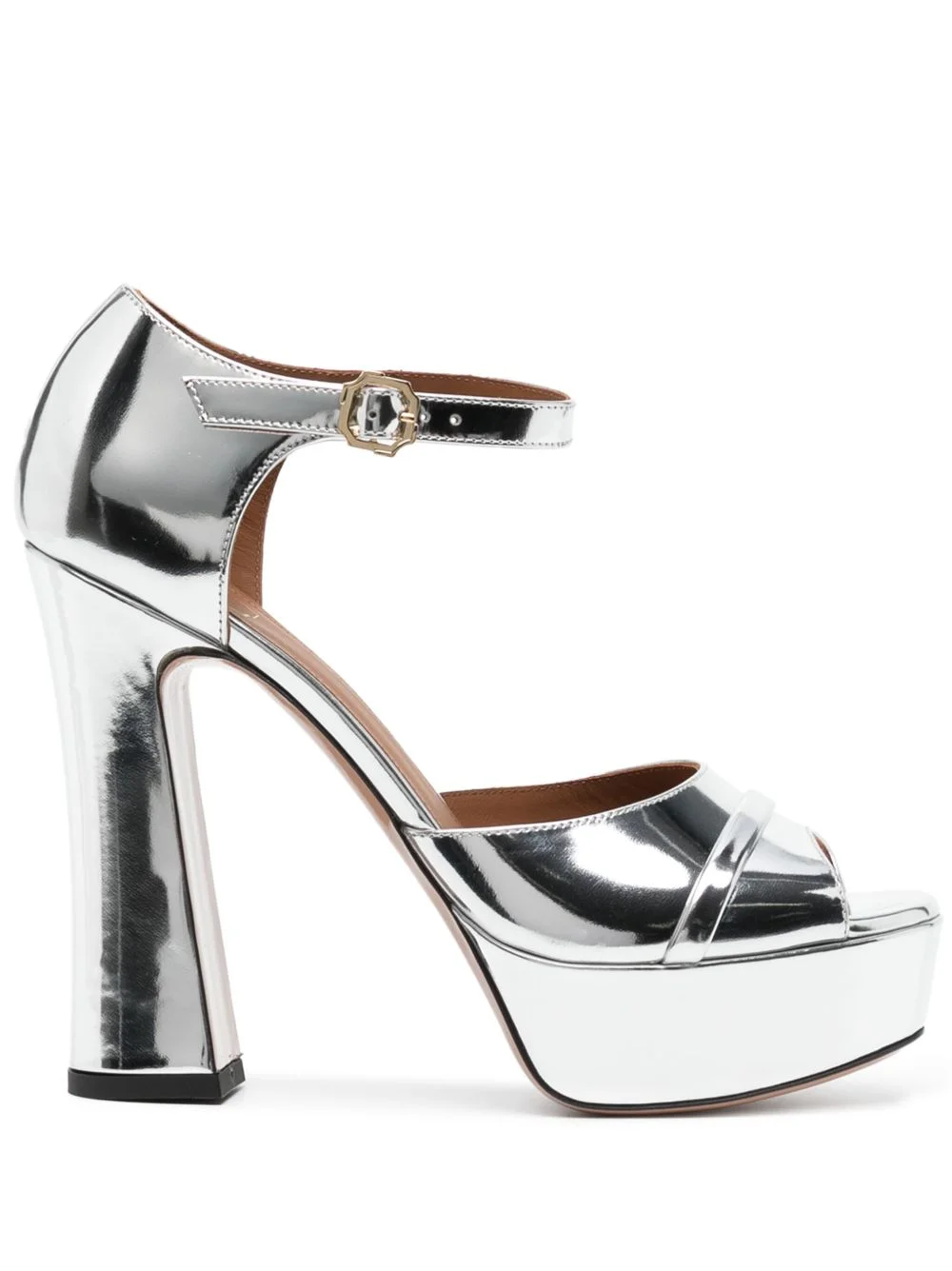 Yuri 125mm platform leather sandals Highlights - Silver-tone - Leather - Metallic effect - Round open toe - Buckle-fastening ankle strap - Platform sole - Branded insole - 125mm high block heel Made in Italy Composition Outer: Leather 100% Sole: Leather 100% Lining: Leather 100% SIZE & FIT Measurement HEEL 4.72 in(12 cm) Sole height 1.37 in(3.5 cm)