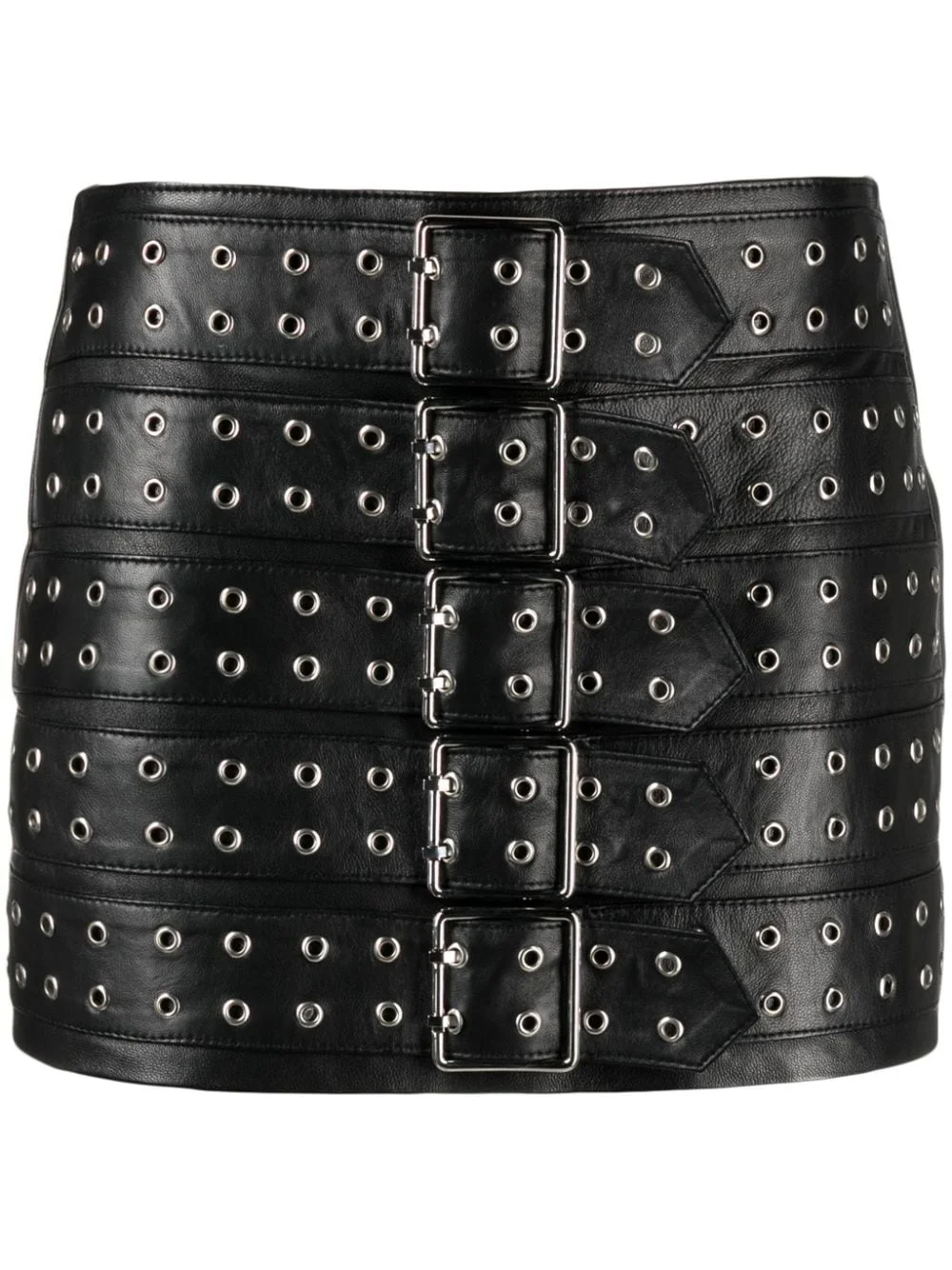 belted leather miniskirt Highlights - Black - Leather - Silver-tone hardware - Eyelet embellishment - Decorative buckle detailing - Rear zip fastening - Low-rise - Thigh-length Imported Composition Lining: Viscose 80%, Polyester 20% Outer: Leather 100% SIZE & FIT Model measurements Height 5 ft 10 in(1.77 m) Bust/Chest 34.64 in(88 cm) Hips 35.43 in(90 cm) Waist 24.8 in(63 cm) FittingInformation This mini-length skirt is intended to be worn just below the waist Slightly short in length; consider your own measurements Soft leather has a supple and smooth construction offering some flexibility This piece fits true to size – take your usual size Washing instructions Specialist Cleaning