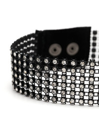 crystal-embellished mesh choker black leather mesh detailing crystal embellishment snap-button fastening Imported SIZE & FIT Model measurements Height 5 ft 10 in(1.78 m) Bust/Chest 31.49 in(80 cm) Hips 36.22 in(92 cm) Waist 25.59 in(65 cm) Measurement Length when open 13.77 in(35 cm) WIDTH 1.18 in(3 cm)