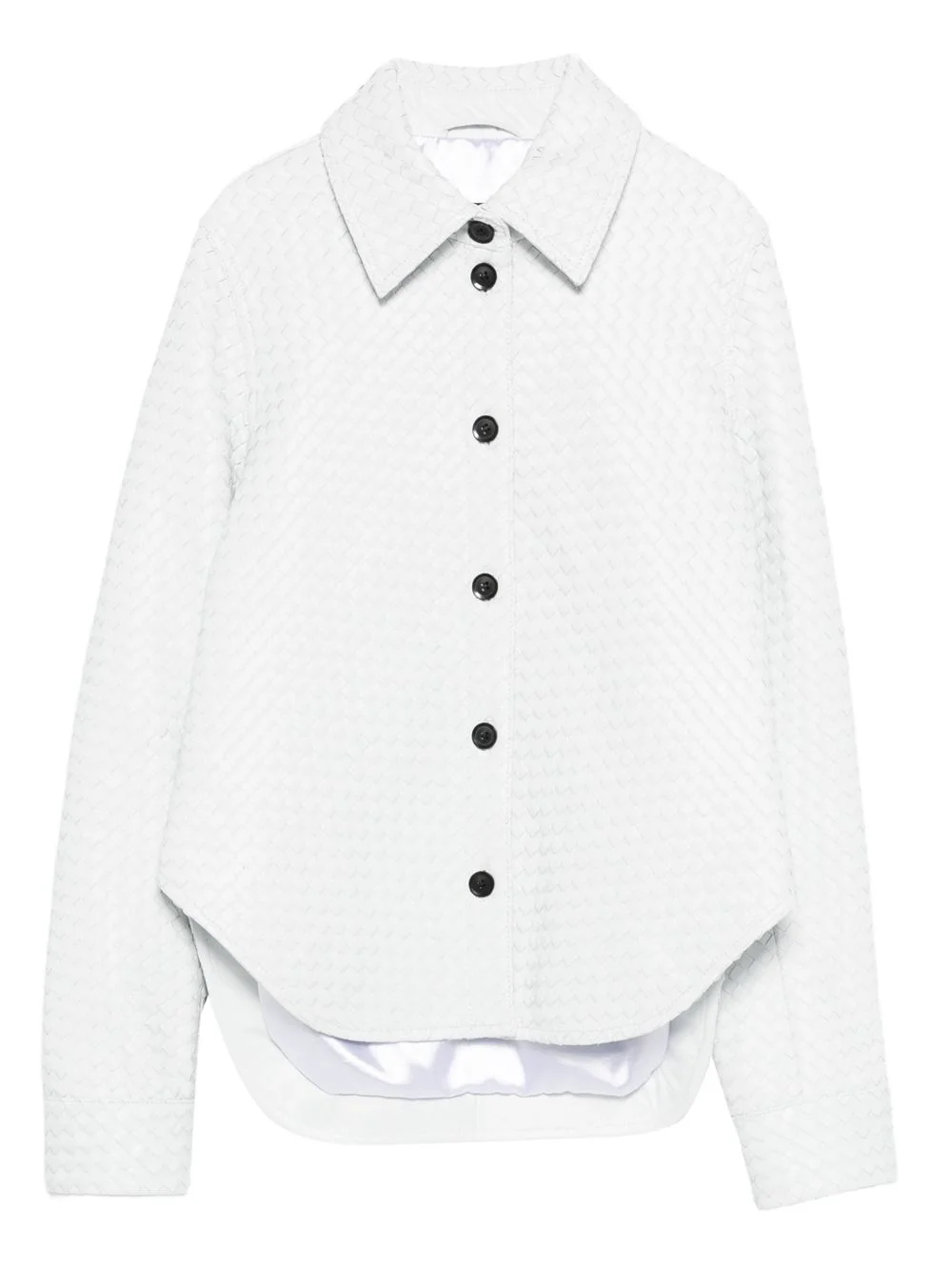 Demi textured shirt Highlights - White - Textured finish - Button fastening - Classic collar - Long sleeves - Curved hem Imported Composition Calf Leather 100% Washing instructions Specialist Cleaning