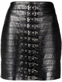 Dita leather mini skirt black leather decorative buckle detailing high waist rear zip fastening thigh-length Imported Composition Lining: Viscose 80%, Polyester 20% Outer: Leather 100% SIZE & FIT Model measurements Height 5 ft 10 in(1.77 m) Bust/Chest 35.03 in(89 cm) Hips 35.03 in(89 cm) Waist 23.62 in(60 cm) Washing instructions Specialist Cleaning
