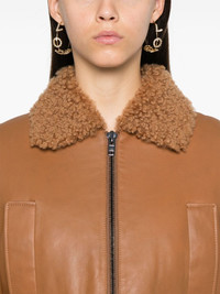 Idris jacket Highlights - Camel brown - Sheepskin - Smooth grain - Front zip fastening - Shearling collar - Long sleeves - Ribbed cuffs and hem - Two side slit pockets - Shearling lining - Straight hem Imported Composition Sheep Skin/Shearling 100% SIZE & FIT Model measurements Height 5 ft 10 in(1.78 m) Bust/Chest 33.85 in(86 cm) Hips 36.61 in(93 cm) Waist 26.77 in(68 cm) FittingInformation Designed for a relaxed fit, this piece allows for comfort and movement when worn The ribbed hem offers a close, comfortable fit Soft leather has a supple and smooth construction offering some flexibility