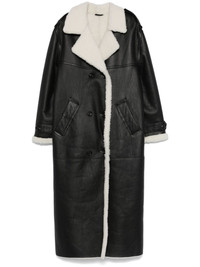 Ivana coat Highlights - Black/white - Lambskin - Crinkled finish - Double-breasted button fastening - Notched lapels - Epaulettes - Long sleeves with belted cuffs - Two side welt pockets - Shearling lining - Straight hem - Long length Imported Composition Lamb Fur 100%, Lamb Skin 100% SIZE & FIT Model measurements Height 5 ft 11 in(1.8 m) Bust/Chest 31.49 in(80 cm) Hips 36.61 in(93 cm) Waist 24.4 in(62 cm) FittingInformation Designed to be unstructured, offering a loose fit throughout Firm shearling has a treated construction offering some durability
