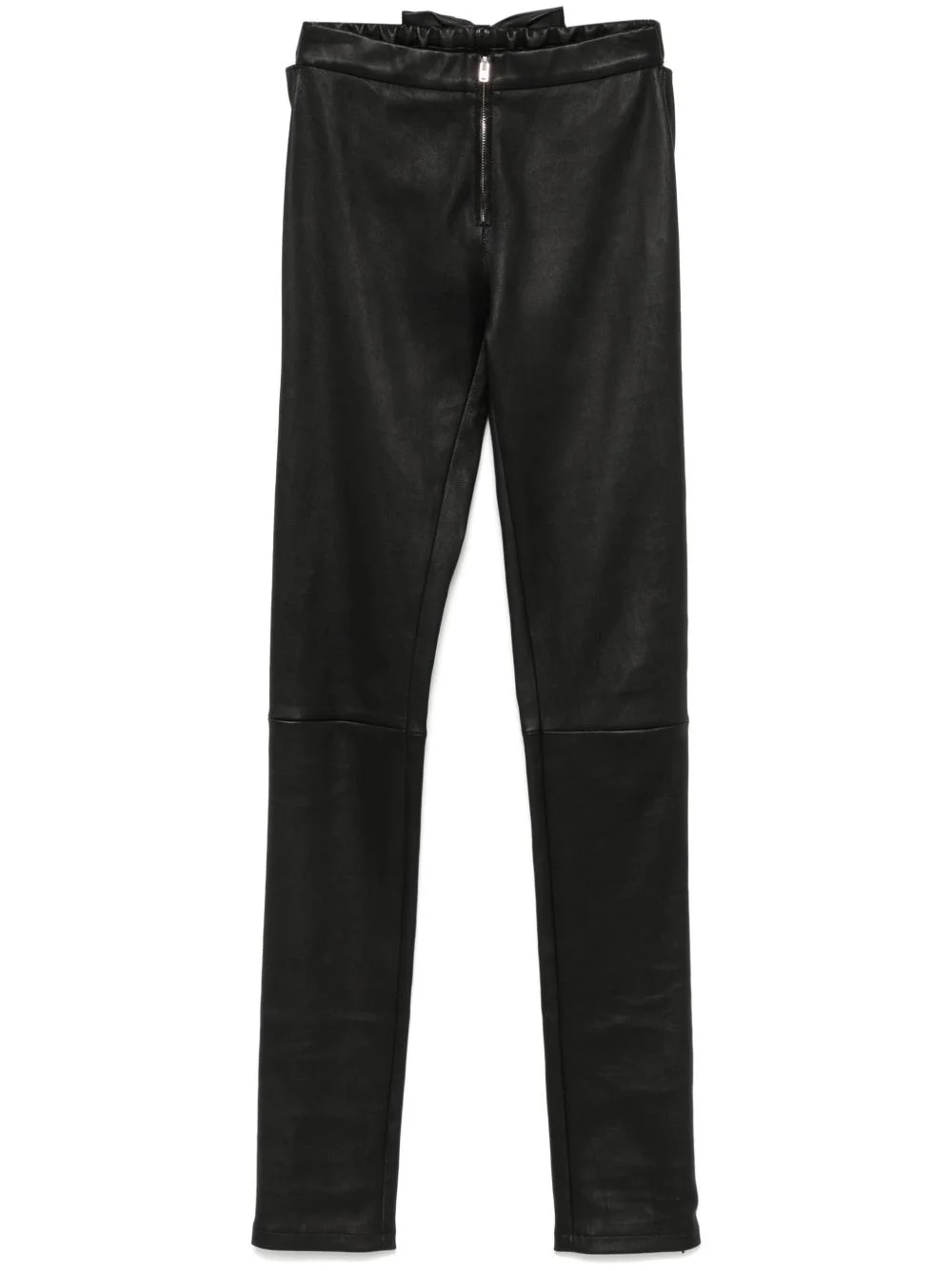 Josie leggings Highlights - Black - Leather - Smooth grain - Stretch-design - Panelled design - Front zip fastening - High waist - Rear elasticated waistband - Bow detailing to the back - Back cut-out detailing - Ankle zips - Full-length Imported Composition Leather 100% SIZE & FIT Model measurements Height 5 ft 10 in(1.78 m) Bust/Chest 33.85 in(86 cm) Hips 36.61 in(93 cm) Waist 26.77 in(68 cm) FittingInformation Designed for a close fit throughout The zipped hems allow you to adjust the fit throughout the calves and ankles Soft leather has a supple and smooth construction offering some flexibility
