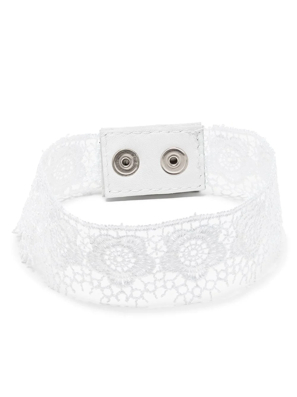 lace choker necklace Highlights - White - Leather - Floral-lace detailing - Rear press-stud fastening Imported SIZE & FIT Model measurements Height 5 ft 10 in(1.78 m) Bust/Chest 33.07 in(84 cm) Hips 35.82 in(91 cm) Waist 25.98 in(66 cm) Measurement Length when open 13.77 in(35 cm) WIDTH 1.37 in(3.5 cm)