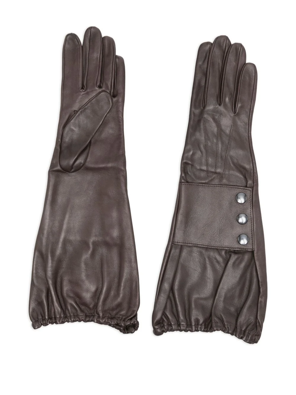 leather gloves Highlights - Brown - Leather - Four snap button fastening - Elasticated cuffs Imported Composition Leather 100% Washing instructions Specialist Cleaning