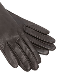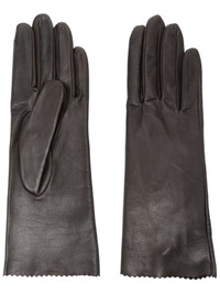 leather gloves Highlights - Cedar brown - Full-finger design - Suede lining - Scallop edge Imported Composition Calf Leather 100%
