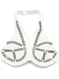 leather top Highlights - White/black - Leather - Rear buckle fastening - Halterneck - Moulded cup - Whipstitch trim - Decorative stitching - Cropped Imported Composition Leather 100% SIZE & FIT Model measurements Height 5 ft 10 in(1.78 m) Bust/Chest 33.85 in(86 cm) Hips 36.61 in(93 cm) Waist 26.77 in(68 cm) FittingInformation Designed for a close fit throughout Made from a midweight non-stretch fabric