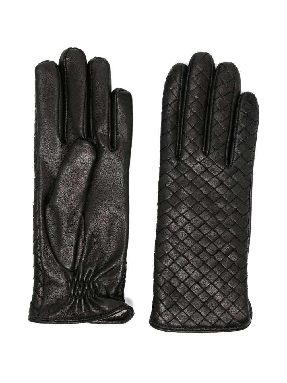 leather woven gloves Highlights - Black - Leather - Woven pattern - Five fingers design Imported Composition Leather 100%