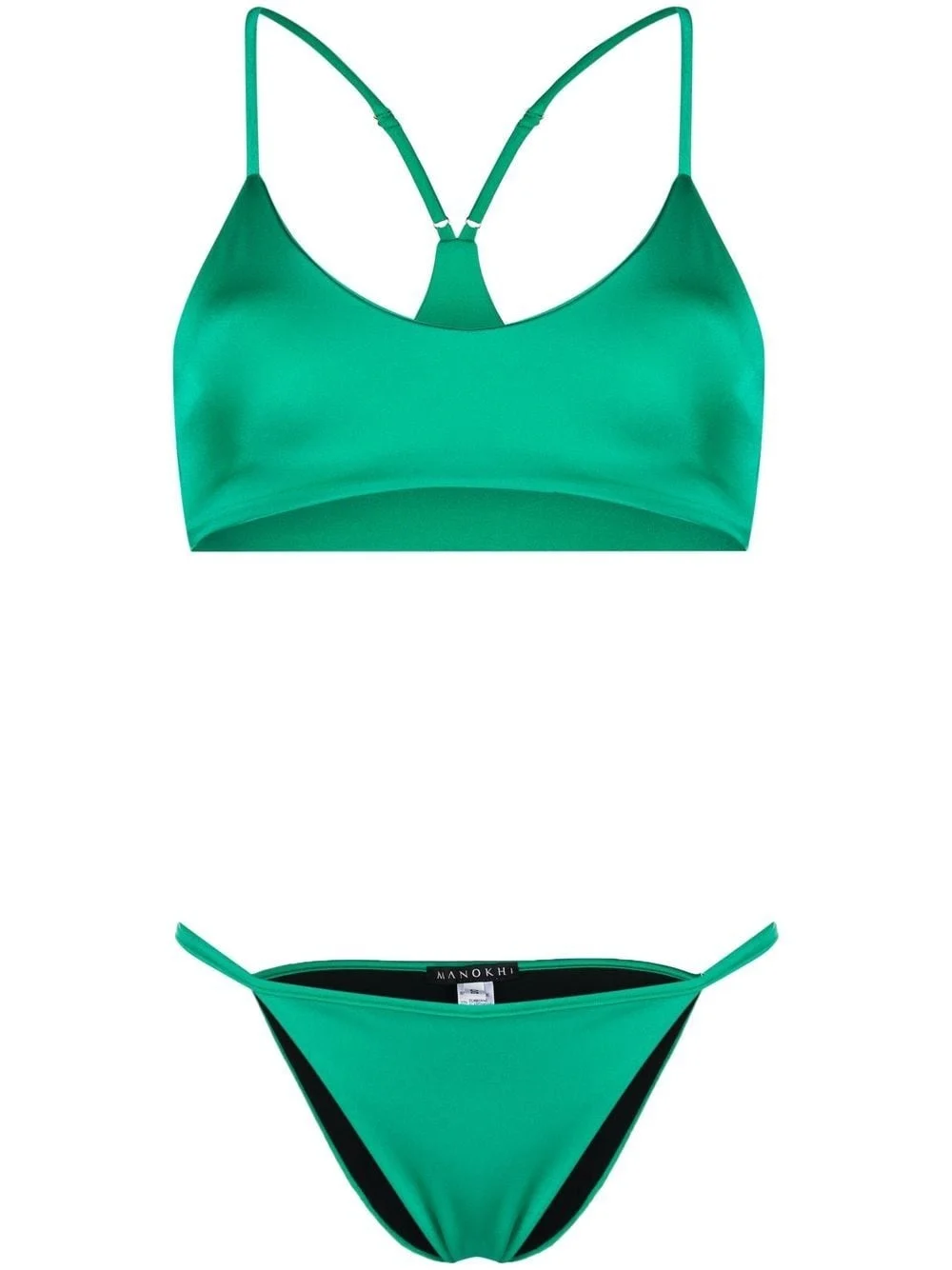 low-rise stretch bikini low-rise stretch bikini from MANOKHI featuring parakeet green, stretch-design, scoop neck, rear criss-cross straps, low-rise and thin straps. Be mindful to try on swimwear over your own garments.. Made in Italy Composition Outer: Nylon 80%, Spandex/Elastane 20% Lining: Nylon 82%, Spandex/Elastane 18%