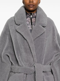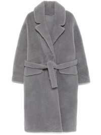Myah coat Highlights - Slate grey - Shearling - Double-breasted press-stud fastening - Notched lapels - Long sleeves - Two front flap pockets - Central rear vent - Leather lining - Straight hem - Mid-length Imported Composition Lamb Fur 100%, Lamb Skin 100% SIZE & FIT Model measurements Height 5 ft 11 in(1.8 m) Bust/Chest 31.49 in(80 cm) Hips 36.61 in(93 cm) Waist 24.4 in(62 cm) FittingInformation Designed for an oversized fit, offering additional room throughout The tie fastening gives an adaptable and personalised fit Firm shearling has a treated construction offering some durability