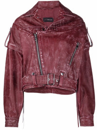 oversized-fit biker jacket vintage red leather notched collar off-centre front zip fastening epaulettes drop shoulder long sleeves front zip fastening pockets belted waist Imported Composition Outer: Leather 100% Lining: Viscose 80%, Polyester 20% SIZE & FIT Model measurements Height 5 ft 10 in(1.78 m) Bust/Chest 31.49 in(80 cm) Hips 36.22 in(92 cm) Waist 25.59 in(65 cm) FittingInformation This piece fits true to size. We recommend you get your regular size Cut for a loose fit Made with a mid-weight non-stretch fabric Washing instructions Specialist Cleaning