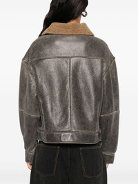 shearling-collar leather jacket Highlights - Black - Calf leather - Distressed finish - Shearling collar - Front press-stud and zip fastening - Notched lapels - Throat latch - Long sleeves - Press-stud fastening cuffs - Two side welt pockets - Belted waist tabs - Shearling lining - Straight hem Imported Composition Lining: Sheep Skin/Shearling 100% Outer: Leather 100% SIZE & FIT Model measurements Height 5 ft 10 in(1.77 m) Bust/Chest 30.7 in(78 cm) Hips 35.03 in(89 cm) Waist 23.62 in(60 cm) FittingInformation Designed to be unstructured, offering a loose fit throughout The adjustable tabs allow for fitted preferences Made from a midweight fabric