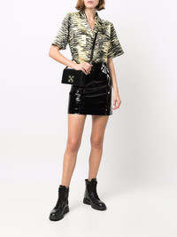 vinyl leather mini skirt jet-black leather-blend high-shine finish high-waisted pencil design Imported Composition Lining: Viscose 80% Outer: Leather 100% Filling: Polyester 20% SIZE & FIT Model measurements Height 5 ft 10 in(1.78 m) Bust/Chest 33.46 in(85 cm) Hips 36.22 in(92 cm) Waist 23.22 in(59 cm) FittingInformation This piece fits true to size. We recommend you get your regular size Cut for a slim fit Made with a mid-weight non-stretch fabric Washing instructions Specialist Cleaning
