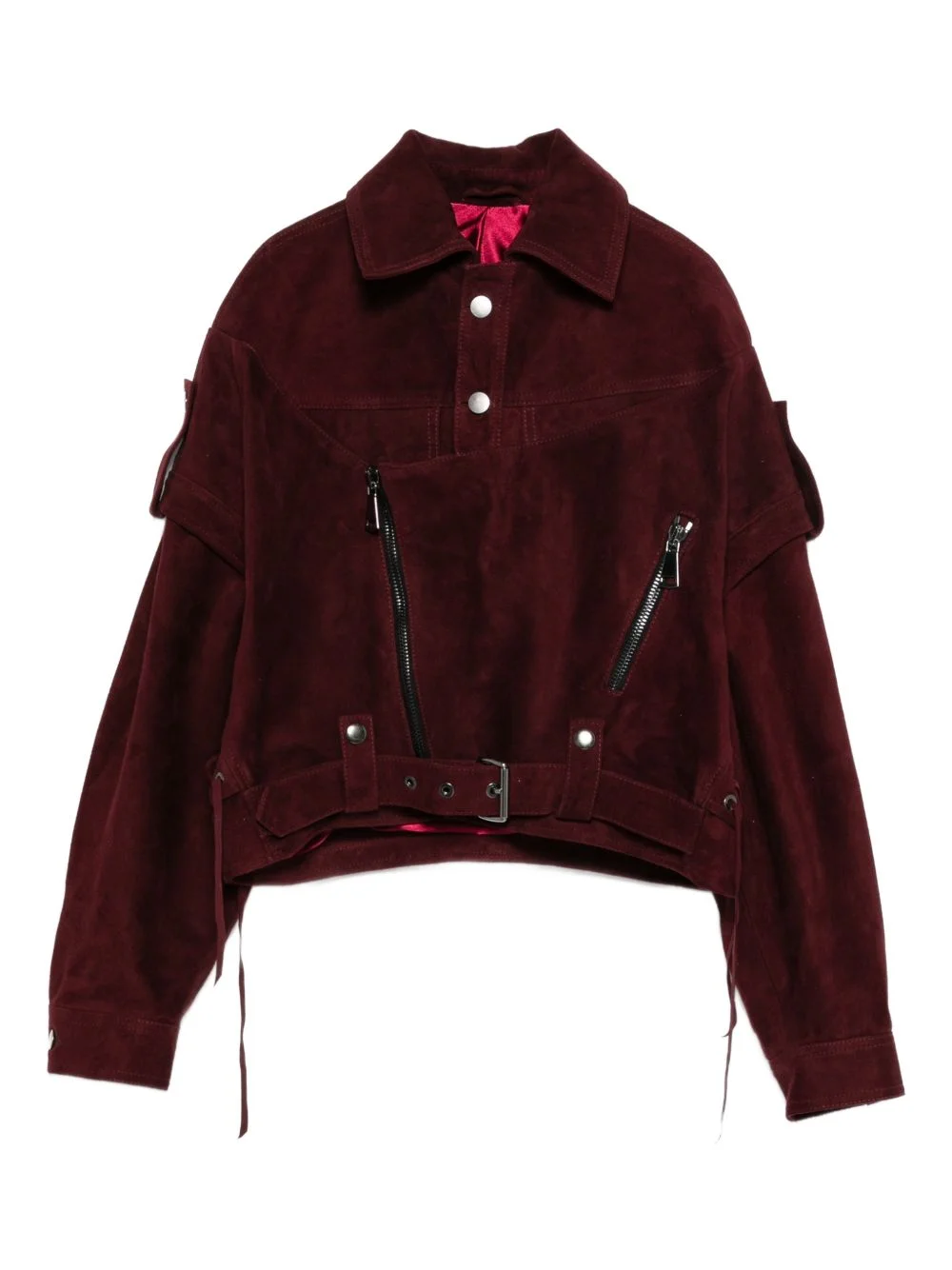 zip suede jacket Highlights - Burgundy - Zip detail - Button fastening - Belt - Silver-tone hardware - Long sleeves Imported Composition Calf Suede 100% Washing instructions Specialist Cleaning