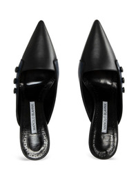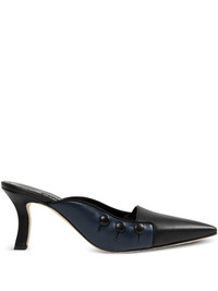 70mm Stateira mules Highlights - Navy blue - Pointed toe - Mid sculpted heel - Button embellishment - Slip-on style Made in Italy Composition Sole: Calf Leather 100% Lining: Kid Leather 100% Outer: Lambskin 100% SIZE & FIT Measurement HEEL 2.75 in(7 cm)