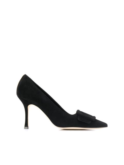 90mm Maysale buckle-detail pointed-toe pumps Highlights - Amber - Suede upper - Pointed toe - Stiletto heel - Buckle embellishment - Slip-on style Made in Italy Composition Outer: Calf Suede 100% Sole: Calf Suede 100%, Rubber 100% Lining: Calf Leather 100% SIZE & FIT Measurement HEEL 3.93 in(10 cm)