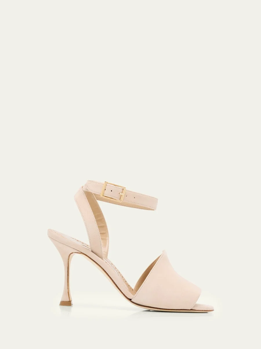 90mm Triananu Suede Ankle-Strap Sandals