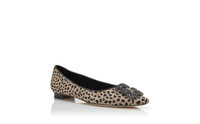 Animal Print Calf Hair Jewel Buckle Flat Pumps