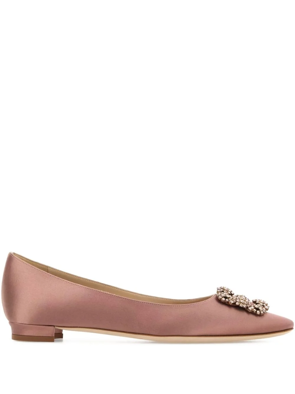 Hangisi pumps Highlights - Dusty pink - Rhinestone embellishment - Almond toe - Low block heel Made in Italy Composition Lining: Leather 100% Outer: Fabric 100% Sole: Calf Leather 100%