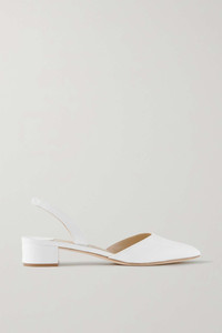 EDITORS'NOTES Manolo Blahnik's shoes are created with an emphasis on quality and timeless design. These 'Aspro' point-toe pumps have been made in Italy from white patent-leather with manageable 30mm block heels and elasticated slingback straps. Wear yours for bridal events or even after the big day is over. SIZE & FIT - Fits true to size, take your normal size - Italian sizing DETAILS & CARE - Heel measures approximately 30mm/ 1,1 inches - White patent-leather (Calf) - Elasticated slingback strap