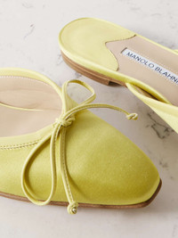 EDITORS'NOTES Manolo Blahnik includes mules in his collections because he loves the sound they make when the wearer walks. This 'Ballerimu' pair has been crafted from satin at the brand's Italian factory, which the founder has often visits to develop samples, whittle lasts and assemble uppers. They're topped with a feminine bow and set on a very slight heel. SIZE & FIT - Fits small to size, take a full size larger than normal - Italian sizing DETAILS & CARE - Slight heel - Chartreuse satin - Slip on - Made in Italy Small to size. See Size & Fit notes.