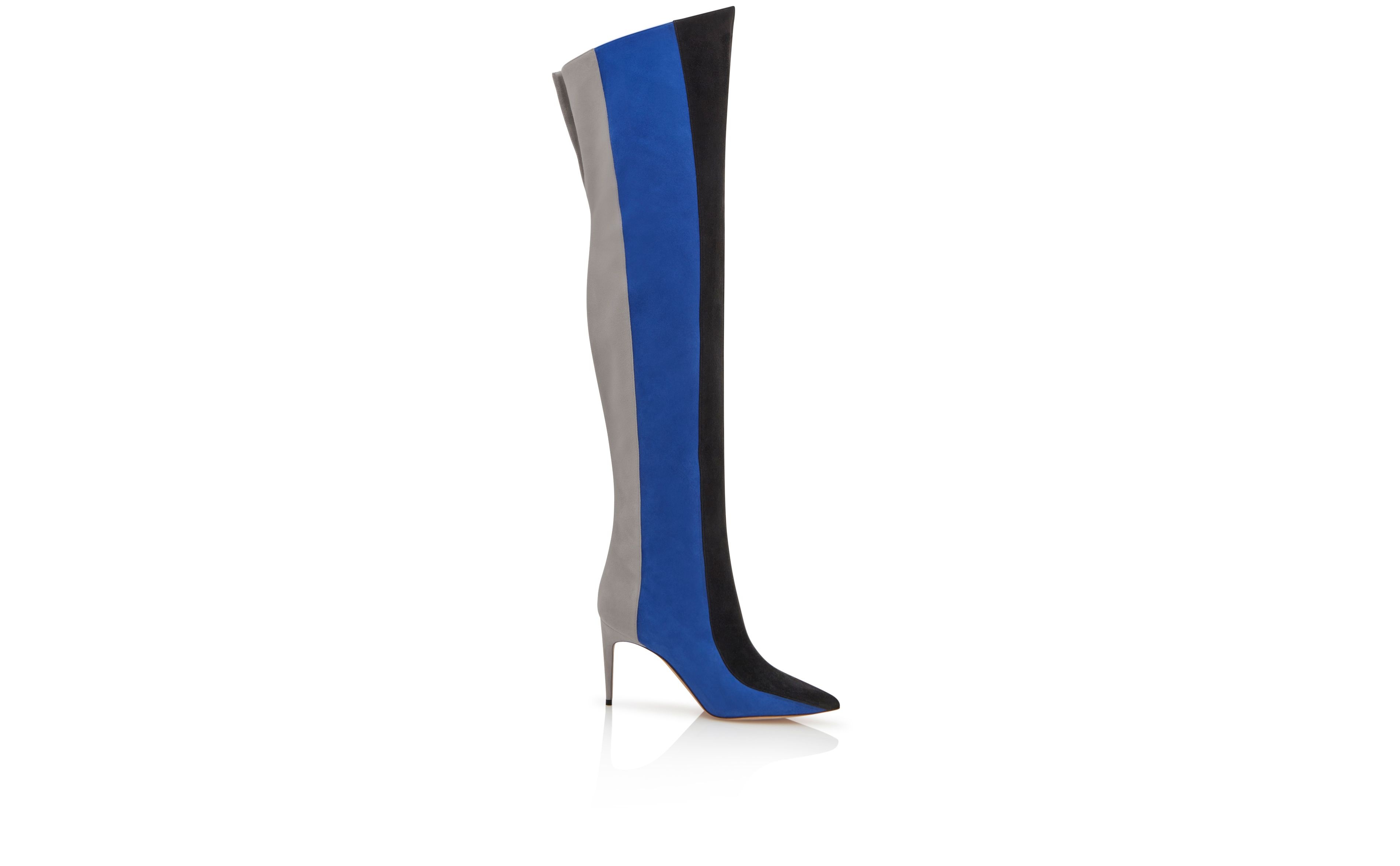 Black, Blue and Grey Suede Thigh High Boots