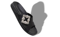 Black Satin Jewel Buckle Flat Mules