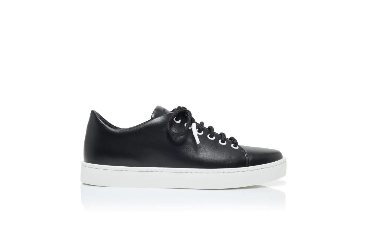 Black Calf Leather Lace-Up Sneakers