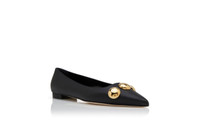Black Calf Leather Pointed Toe Flat Pumps