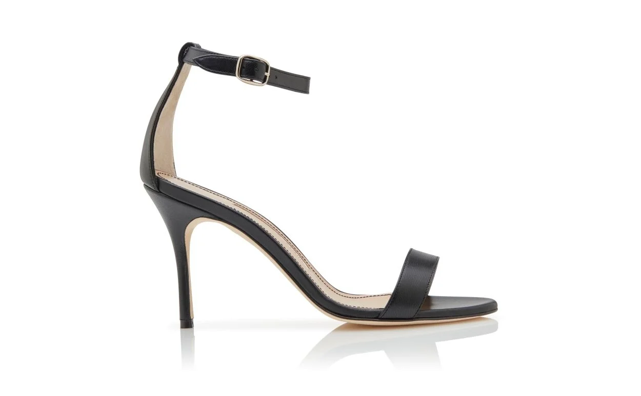 Black Nappa Leather Ankle Strap Sandals