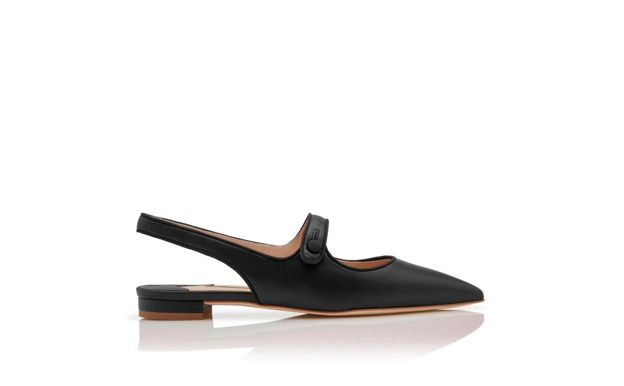 Black Nappa Leather Slingback Flat Pumps