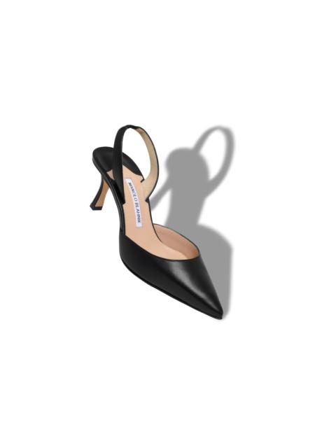 Black nappa leather pointed toe slingback pumps featuring stiletto mid heel. Upper: 100% lamb nappa. Sole: 100% calf leather. Lining: 100% kid leather. Heel measures 70 mm. Italian sizing. Made in Italy. Product ID: 9XX-0757-0018