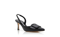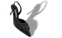 Black nappa leather pointed toe slingback pumps featuring decorative buckle detail, elasticated slingback strap and stiletto mid heel. Upper: 100% lamb nappa. Sole: 100% calf leather. Lining: 100% kid leather. Heel measures 70 mm. Italian sizing. Made in Italy. Product ID: 219-0254-0007