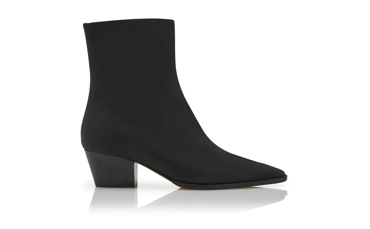 Black nubuck pointed toe ankle boots featuring block low heel. Upper: 100% calf leather. Upper:100% calf leather.Sole:100% calf leather.Lining:100% kid leather.Heel measures:50 mm.Italian sizing. Made in Italy. Product ID: 325-3054-0002