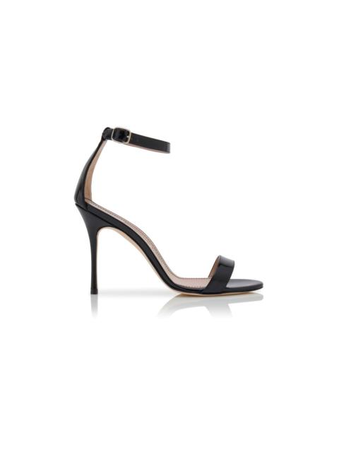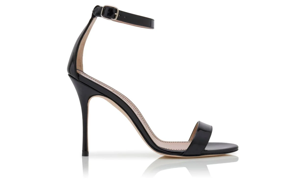 Black Patent Leather Ankle Strap Sandals