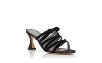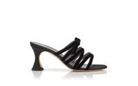 Black silk open toe mules featuring velvet criss-cross straps and bow detail. Finished with a flared block mid heel. Upper:90% silk, 10% velvet.Sole:100% calf leather.Lining:100% goat leather.Heel measures:70 mm.Italian sizing. Made in Italy. Product ID: 425-2212-0003