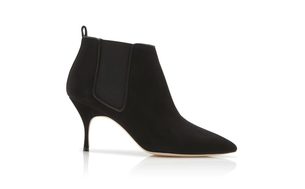 Black suede ankle boots featuring fitted design, elasticated opening and stiletto heel. Upper: 100% calf suede. Sole: 100% cow leather. Lining: 100% goat skin. Heel measures 70mm. Italian sizing. Made in Italy. Product ID: 9XX-0773-0004