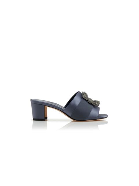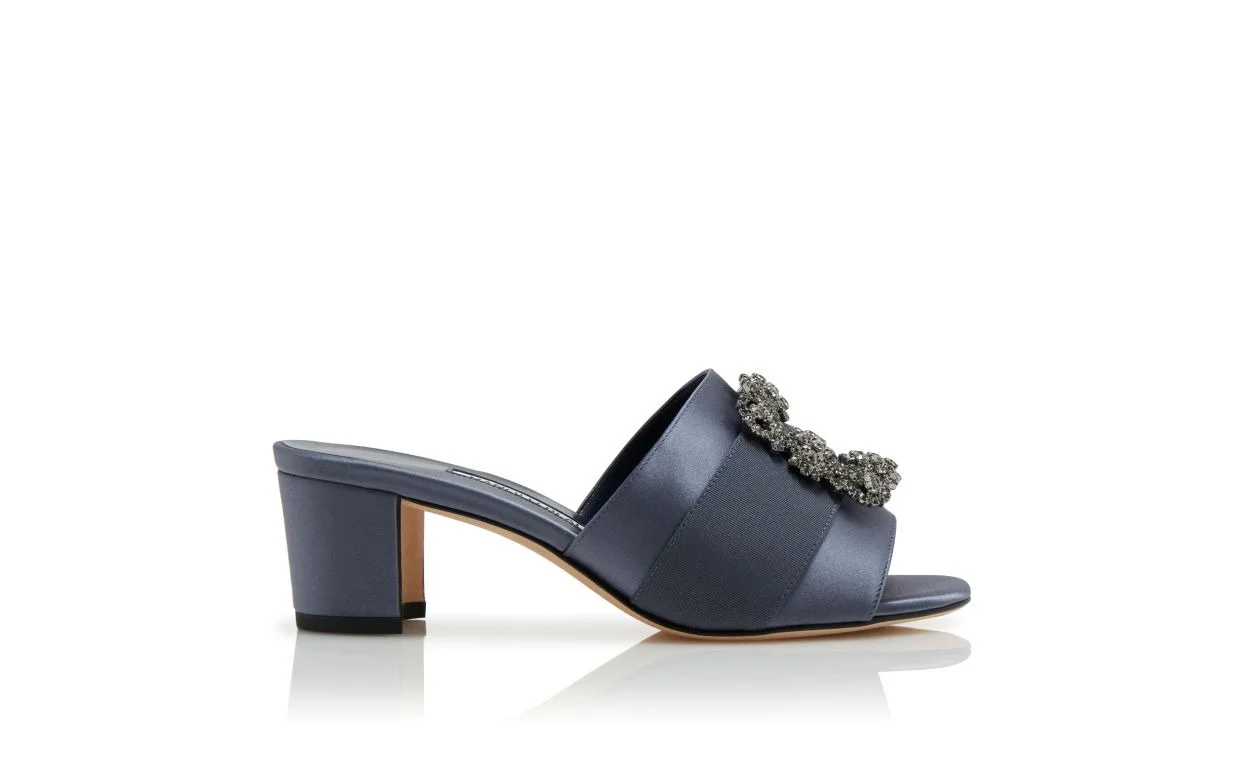 Blue-Grey Satin Jewel Buckle Mules