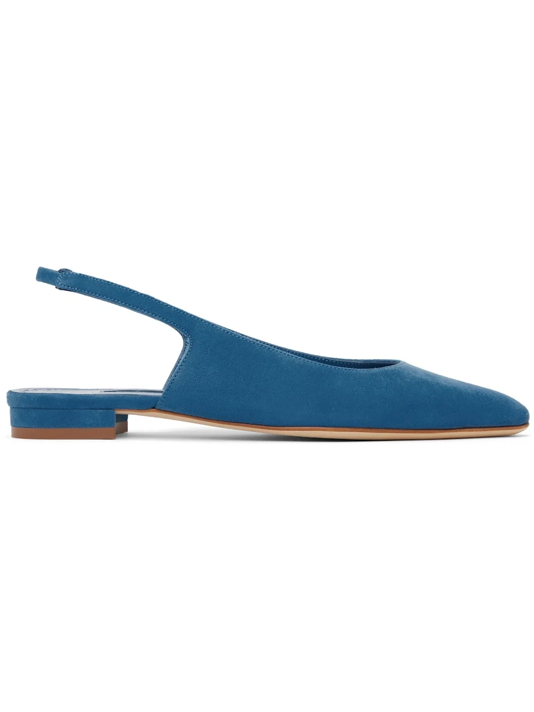Handcrafted suede ballerina flats in blue. · Pointed toe · Elasticized slingback strap · Logo patch at padded footbed · Buffed leather lining · Covered leather heel with rubber injection · Suede sole Supplier color: Dark blue Leather. Made in Italy 251140F118007