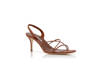 Brown nappa leather open toe slingback sandals featuring thin front strap detailing and stiletto mid heel. Upper: 100% lamb nappa. Sole: 100% calf leather. Lining: 100% kid leather. Heel measures 70 mm. Italian sizing. Made in Italy. Product ID: 224-1684-0004
